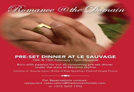 Burn with passion for our all consuming pre-set dinner under the stars of Manama skyline. A 3-Course dinner with a bottle of Rosé Méthode Champenoise & Polaroid couple picture @ BHD 69net per couple.